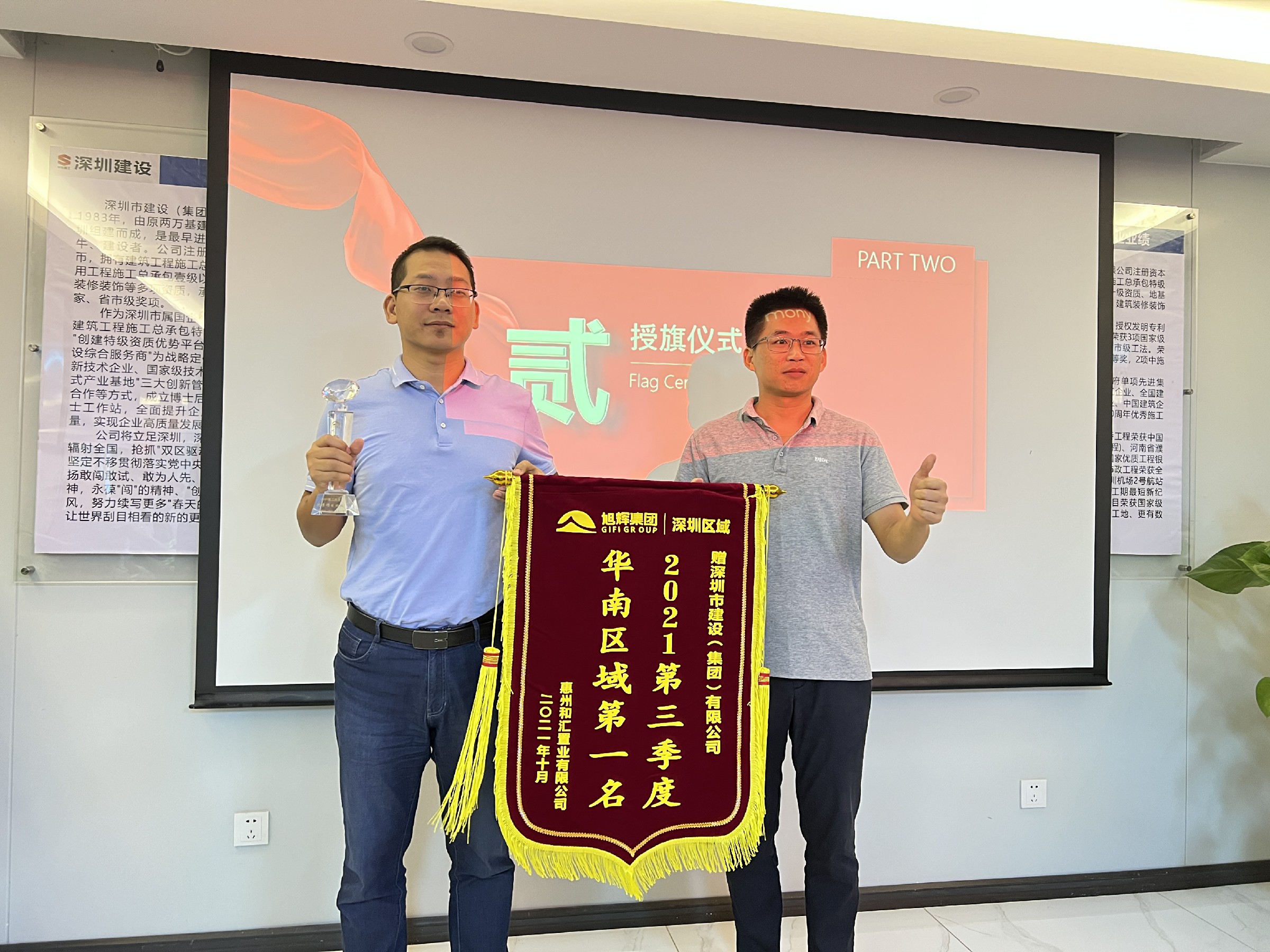 10月19日上午,旭辉集团第三季度评估表彰大会在铂钻花园二期深圳建设集团项目部召开。旭辉集团项目负责人杨志明、深圳建设集团项目经理崔纪乐、总监理工程师张明学共同出席会议。 回顾2021年第三季度工作,惠州铂钻花园二期项目在集团领导、各相关单位的督导...