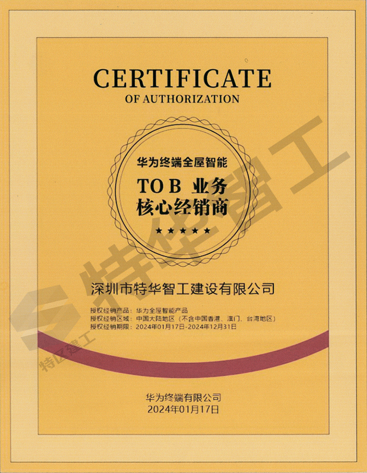 一家专注于华为全屋智能业务的建筑科技型公司,华为全屋智能战略合作伙伴、核心全链集成商,致力于住宅、保障性住房、办公、商业、医疗和学校等新建、改扩建工程领域,为客户提供超预期的全方位全屋智能解决方案。 我们秉持创新、共享的经营理念,以客户需求为中心。凭借丰富的项目管理经验、专业的实施团队、持续的优质服务和技术创新,为客户提供方案定制化、工艺标准化和高效装配化的施工服务,并在产品交付后持续为客户提供完备的售后服务和技术支持,保障客户最终获得卓越的使用体验。匠心特华 智绘人居 精工筑家联系地址:深圳市龙岗区龙城街道天健创智天地1栋20楼服务热线:0755-83281586